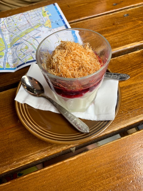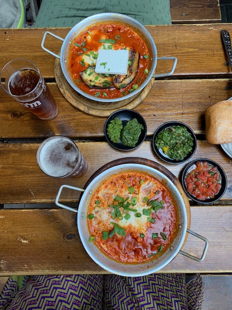 Where: HaCarmel St in the market, starting the street from the north, you will find the restaurant on the left hand side midway through the market What: SHAKSHUKA!!! and draft beer (they only had one dessert on the menu but it was delicious) Why: Great atmosphere, very nice staff, outdoor space, perfect location to do some people watching!